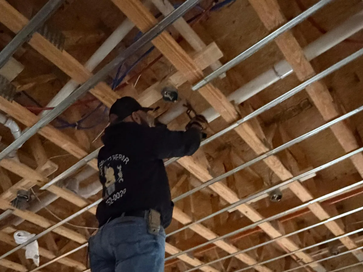 That includes everything from electrical troubleshooting, lighting installation, and panel upgrades to leak detection, drain cleaning, pipe repairs, and fixture installations.